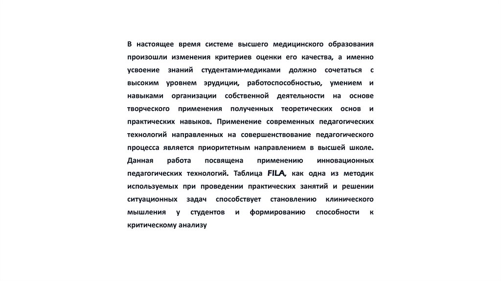 В настоящее время системе высшего медицинского образованияпроизошли изменения критериев оценки его качества, а именно