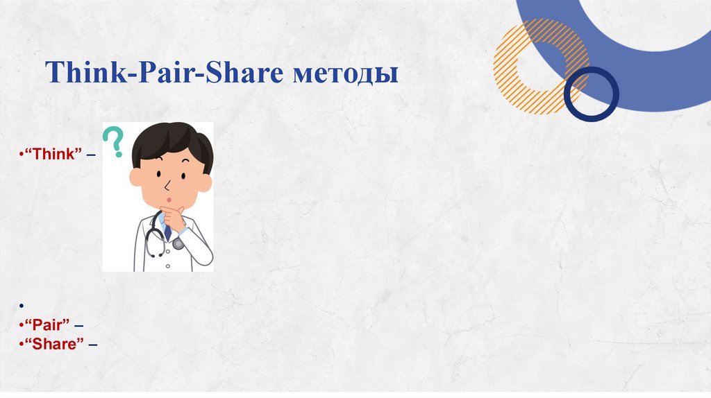 Think-Pair-Share методы•“Think” – учащимся предлагаются вопросы, задачи или инструкции, связанные с уроком