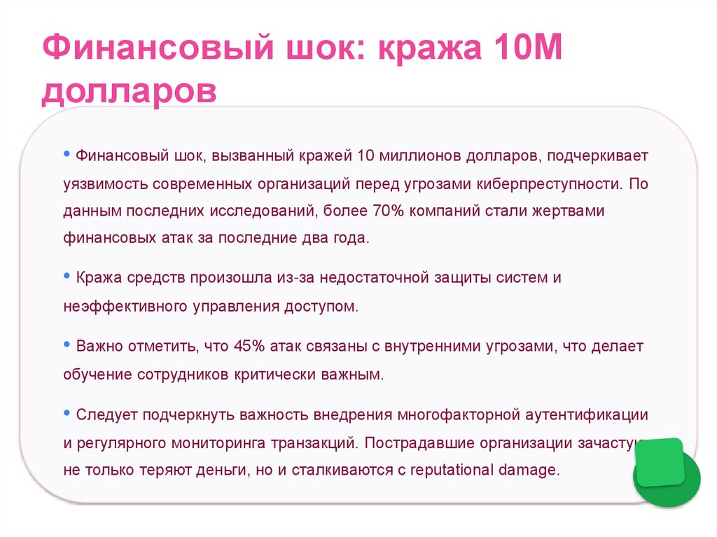 • Финансовые потери: Злоумышленник может использовать доступ к