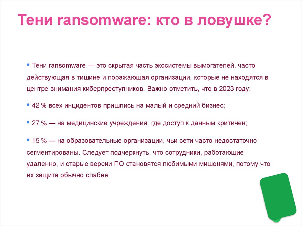 Тени ransomware: кто в ловушке?• Тени ransomware — это скрытая часть экосистемы вымогателей, часто