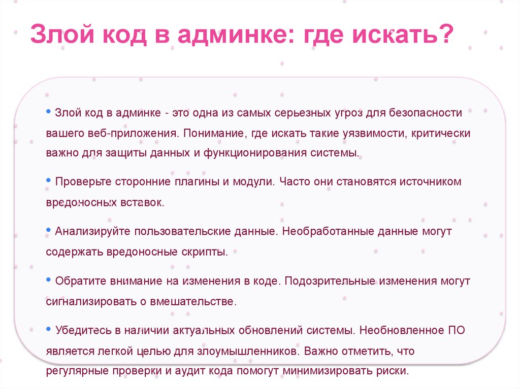• Оцените риски: регулярно проводите анализ угроз и уязвимостей, чтобы