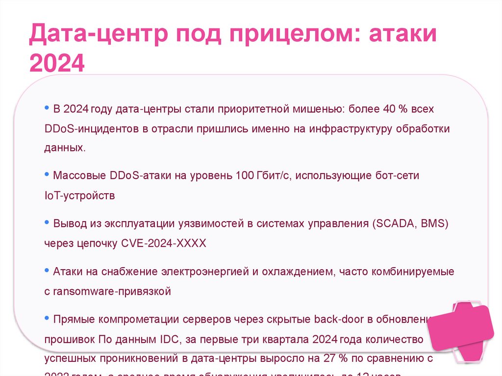 • Увеличение числа атак на инфраструктуру критически важных объектов,