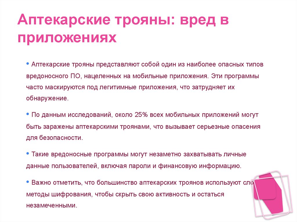 • Аптекарские трояны представляют собой один из наиболее опасных типов