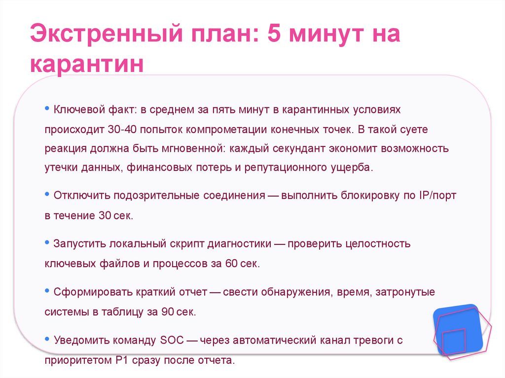 инцидента и конкретные шаги по его нейтрализации. Следует включить: