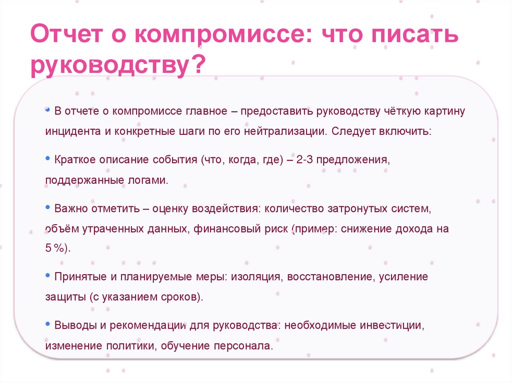 • В отчете о компромиссе главное – предоставить руководству чёткую картину