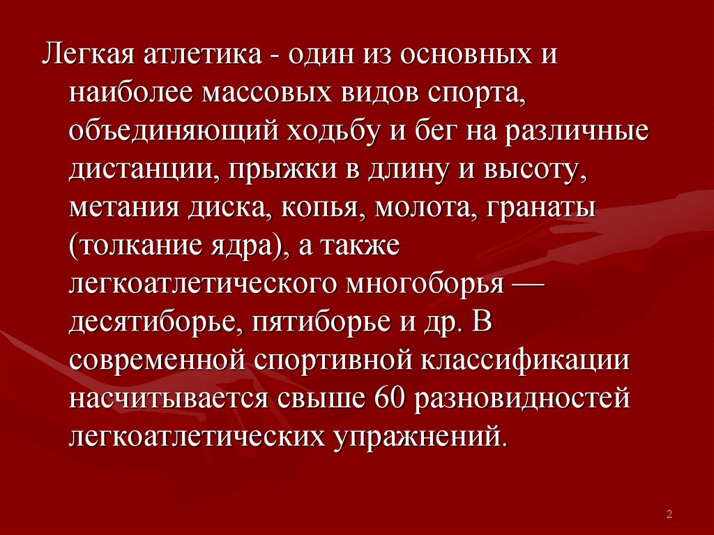 Легкая атлетика - один из основных инаиболее массовых видов спорта,