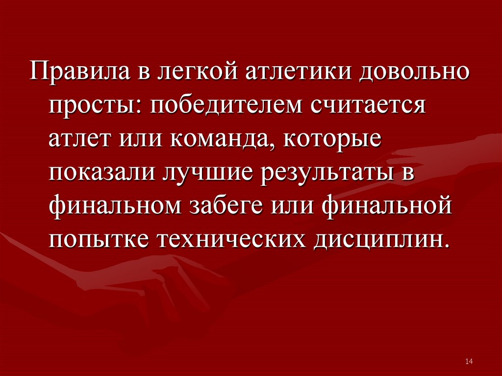 Правила в легкой атлетики довольнопросты: победителем считается