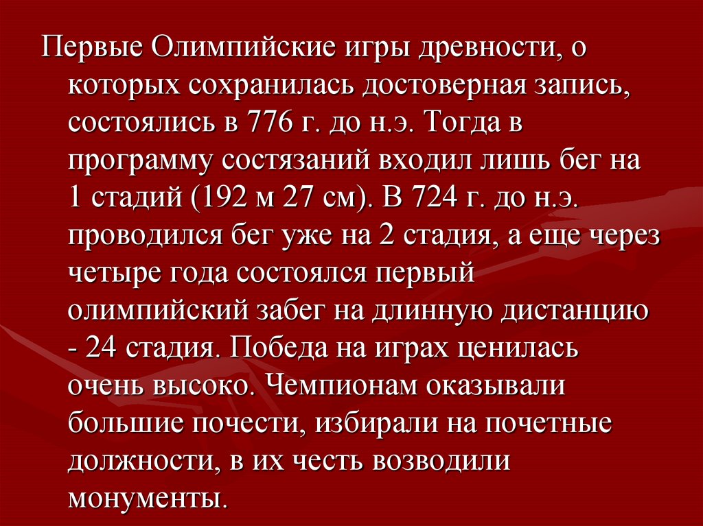 Первые Олимпийские игры древности, окоторых сохранилась достоверная запись,