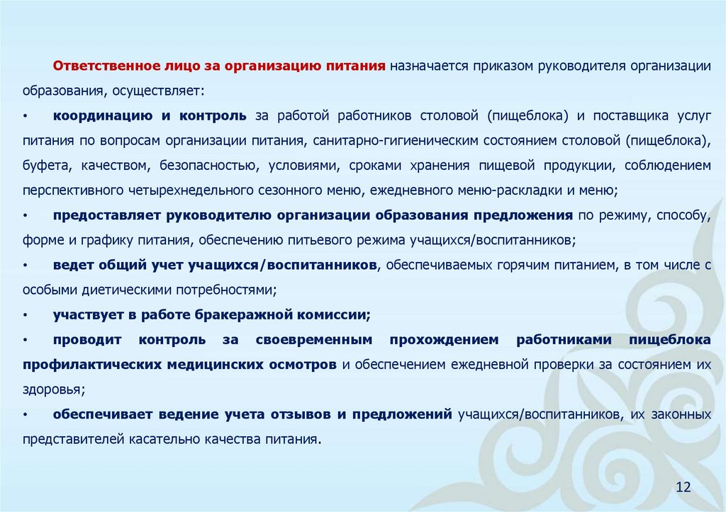 определение лиц, ответственных за организацию питания в организациях
