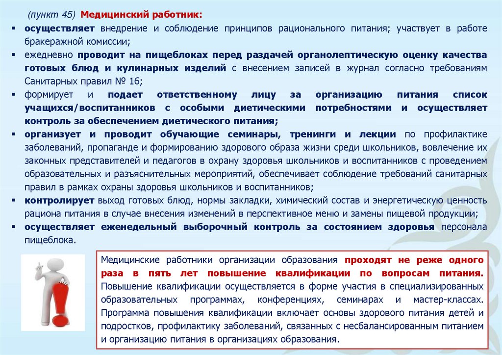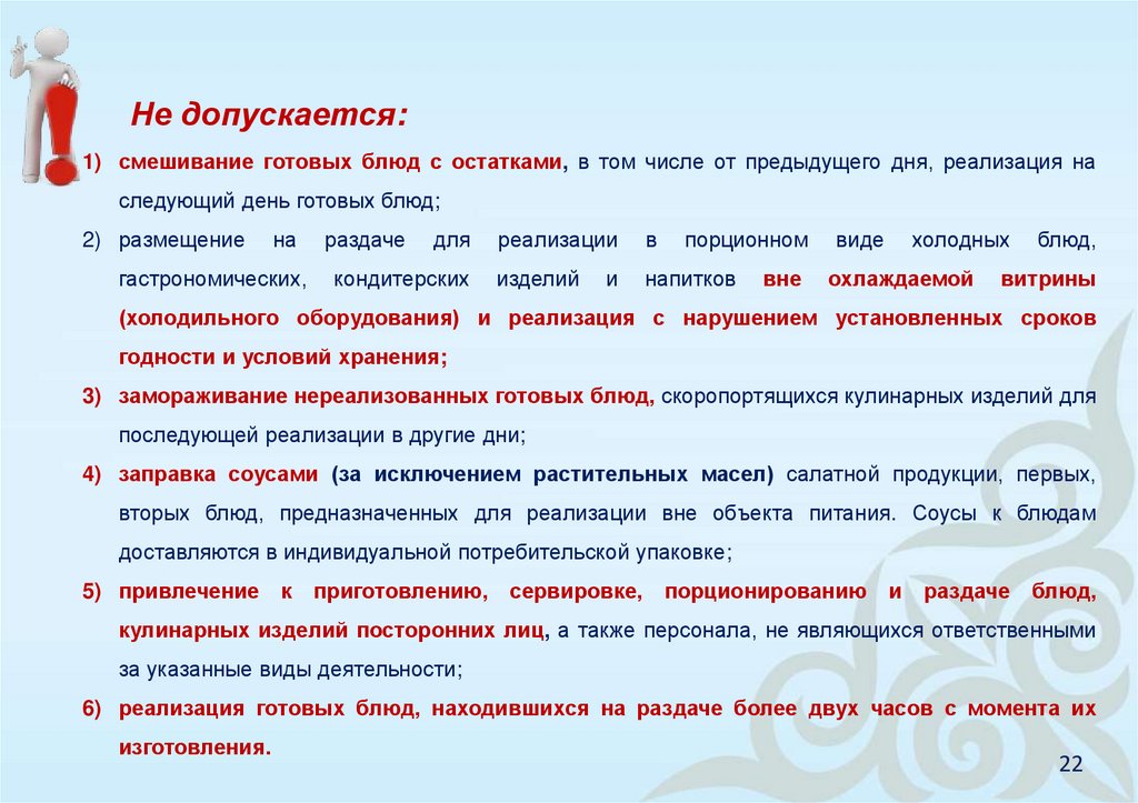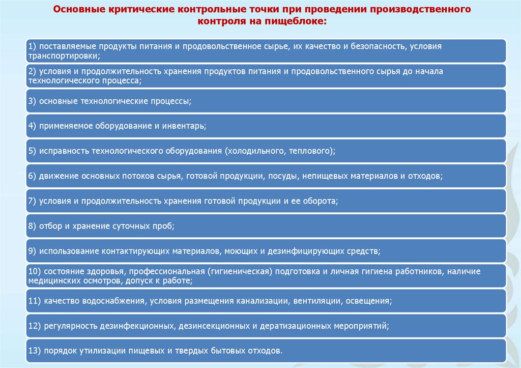 необходимости соблюдения правил личной и (или) производственной гигиены и контроля за