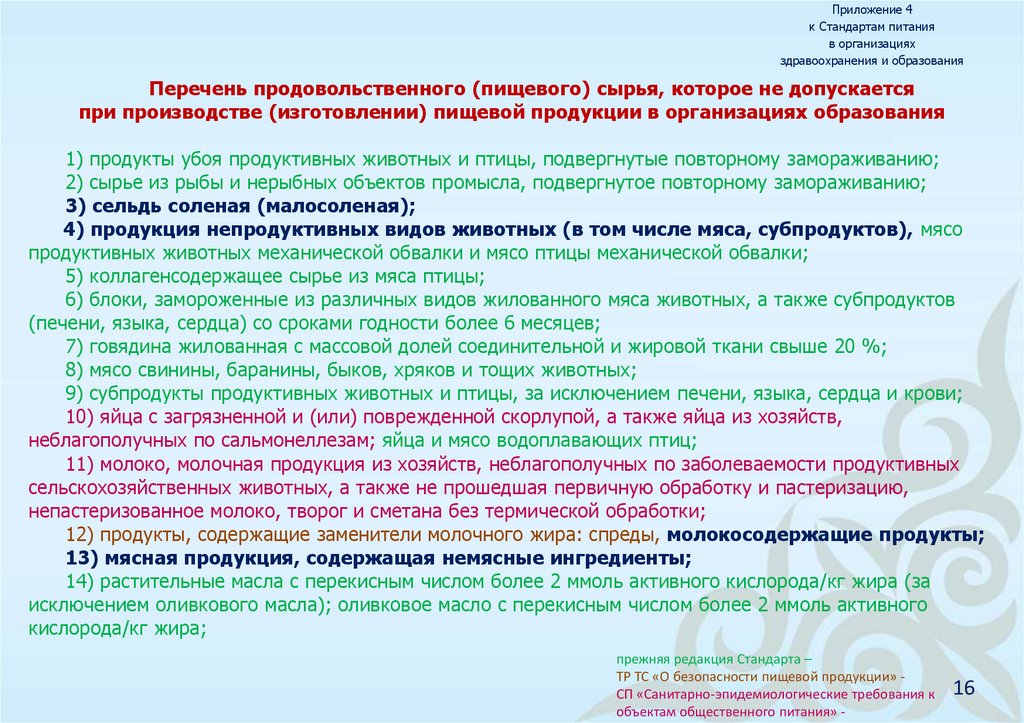 “Санитарно-эпидемиологические требования к объектам общественного питания”, утвержденных