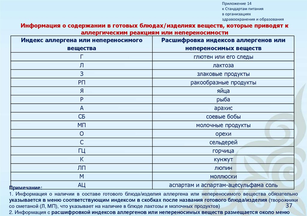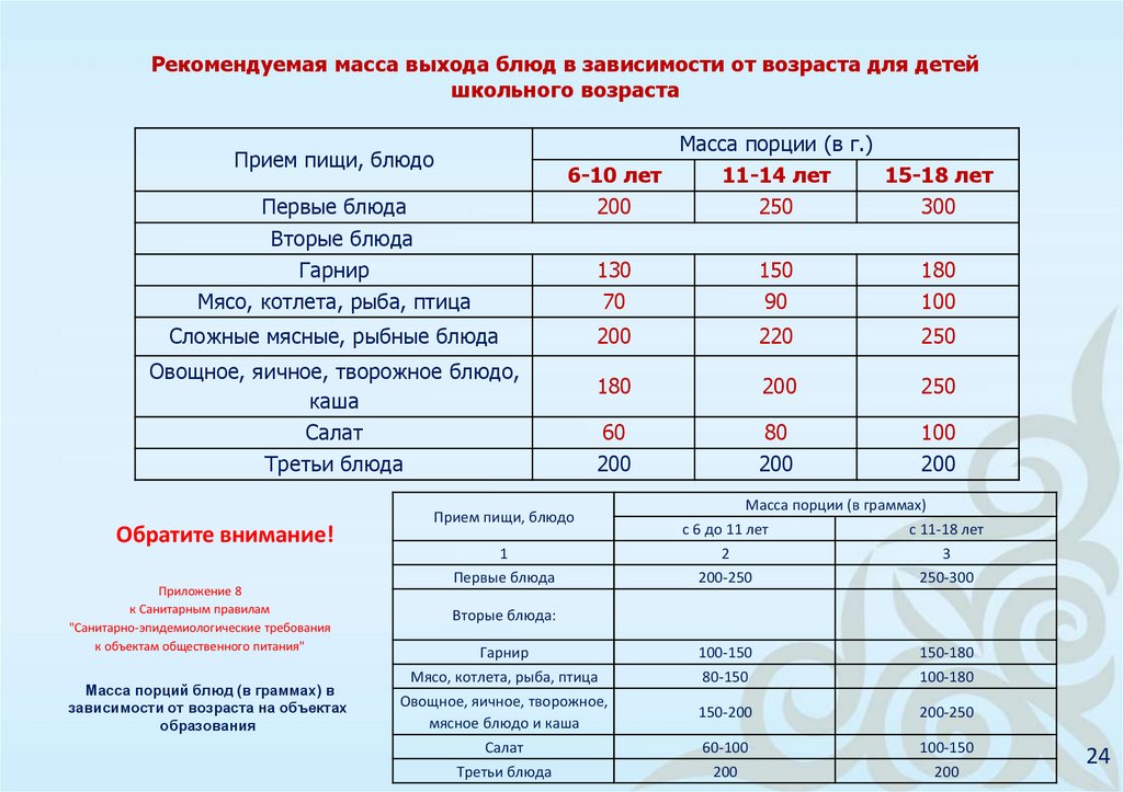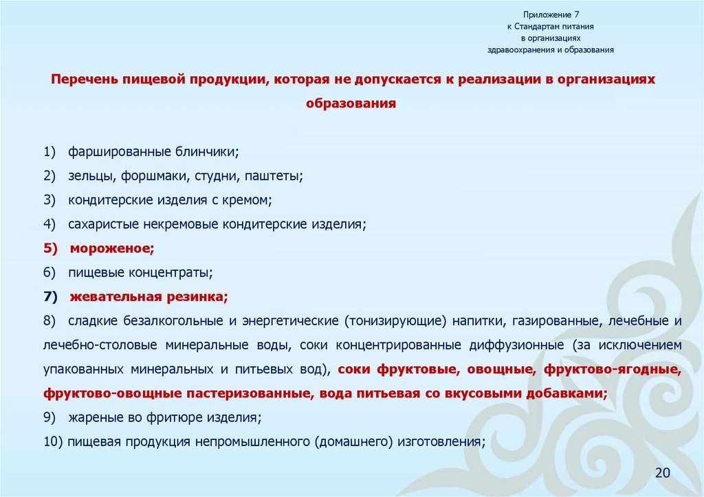6августастандарт питания