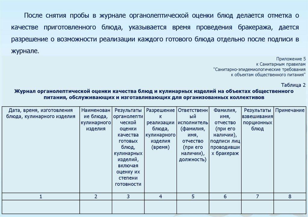 8) бракеражный журнал скоропортящейся пищевой продукции и полуфабрикатов;