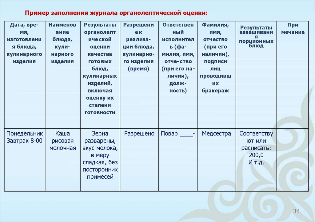 9) журнал органолептической оценки качества блюд и кулинарных изделий;