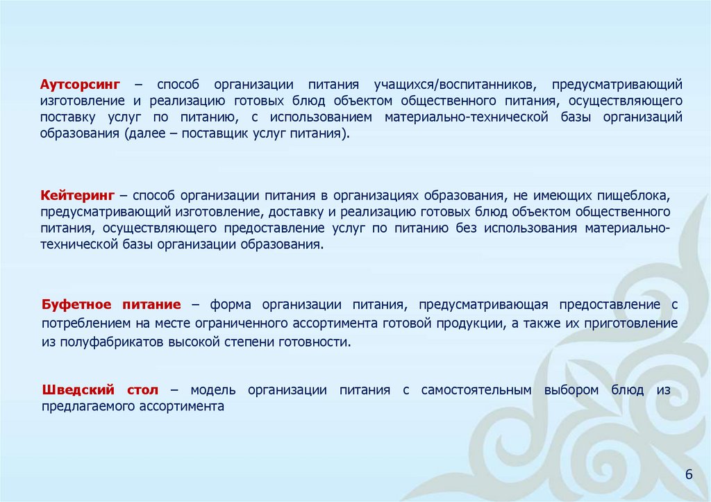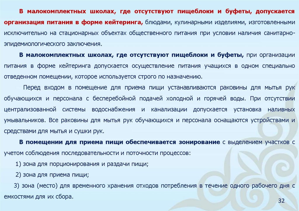 кейтеринга, в учебно-оздоровительных организациях не допускается организация