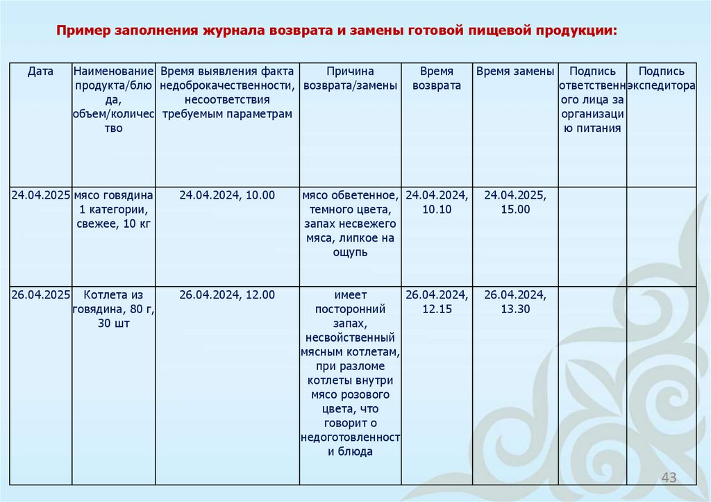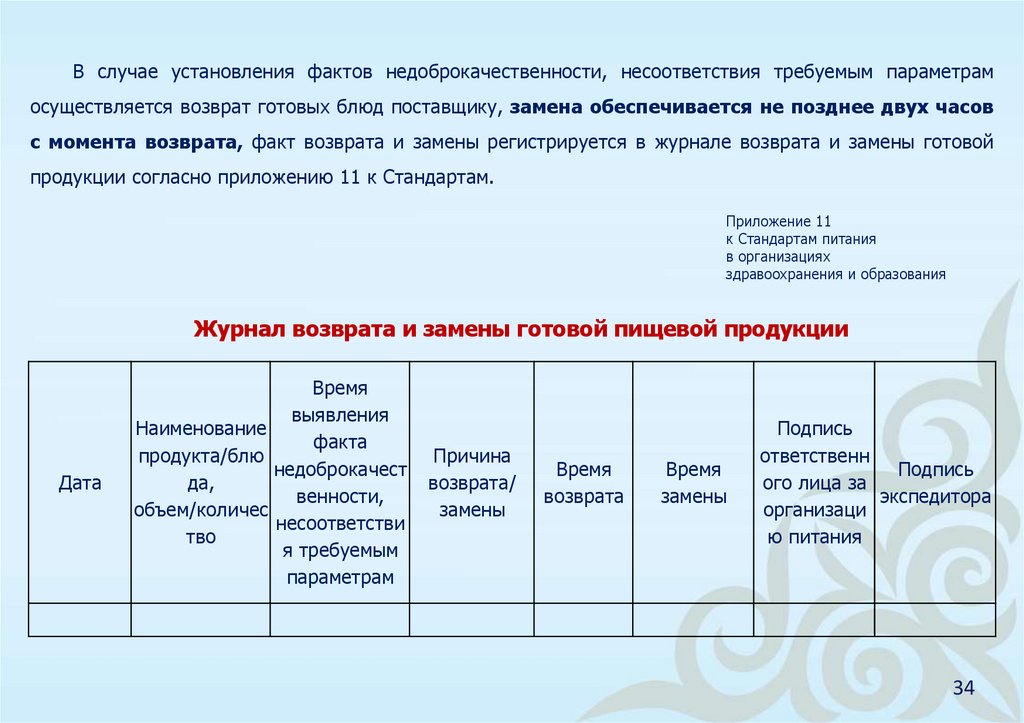 16) журнал возврата и замены готовой пищевой продукции.