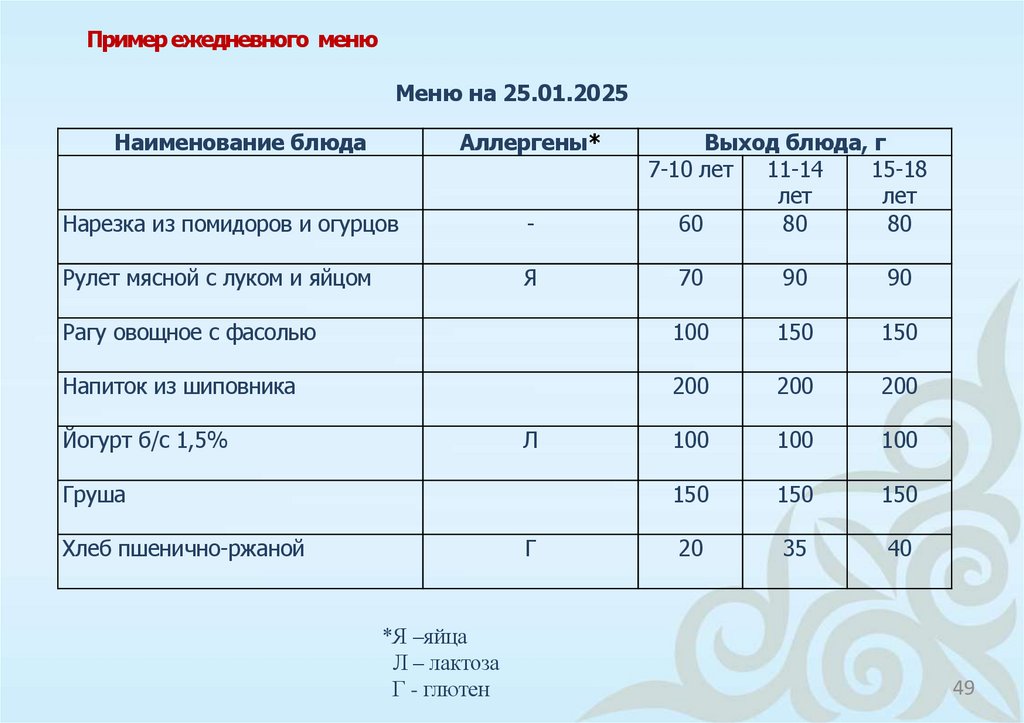 3) перспективное четырехнедельное сезонное меню;