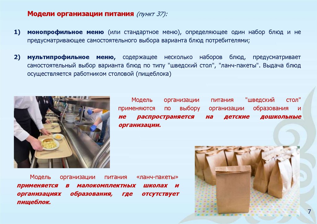 Технологические формы организации питания: