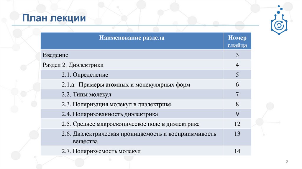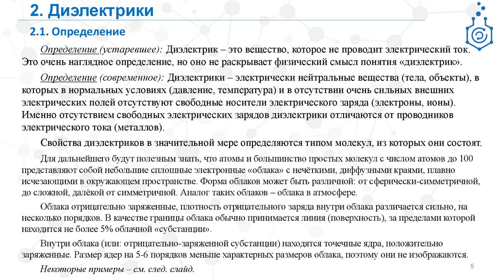 2. Диэлектрики2.1.а. Примеры атомных и молекулярных форм