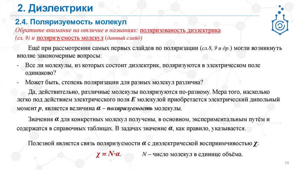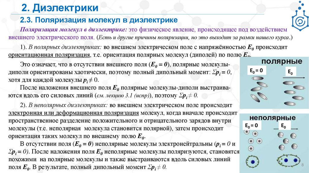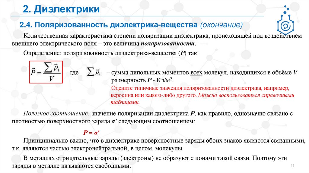 2. Диэлектрики2.4. Поляризованность диэлектрика-вещества (продолжение)