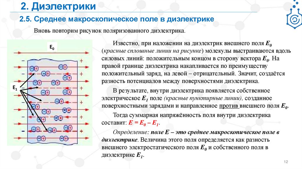 напряжённости внешнего поля Е0 «выходят» из диэлектрика