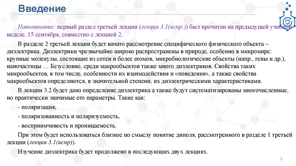 ВведениеНапоминание: первый раздел третьей лекции (лекция 3.1(испр.)) был прочитан на предыдущей учебной