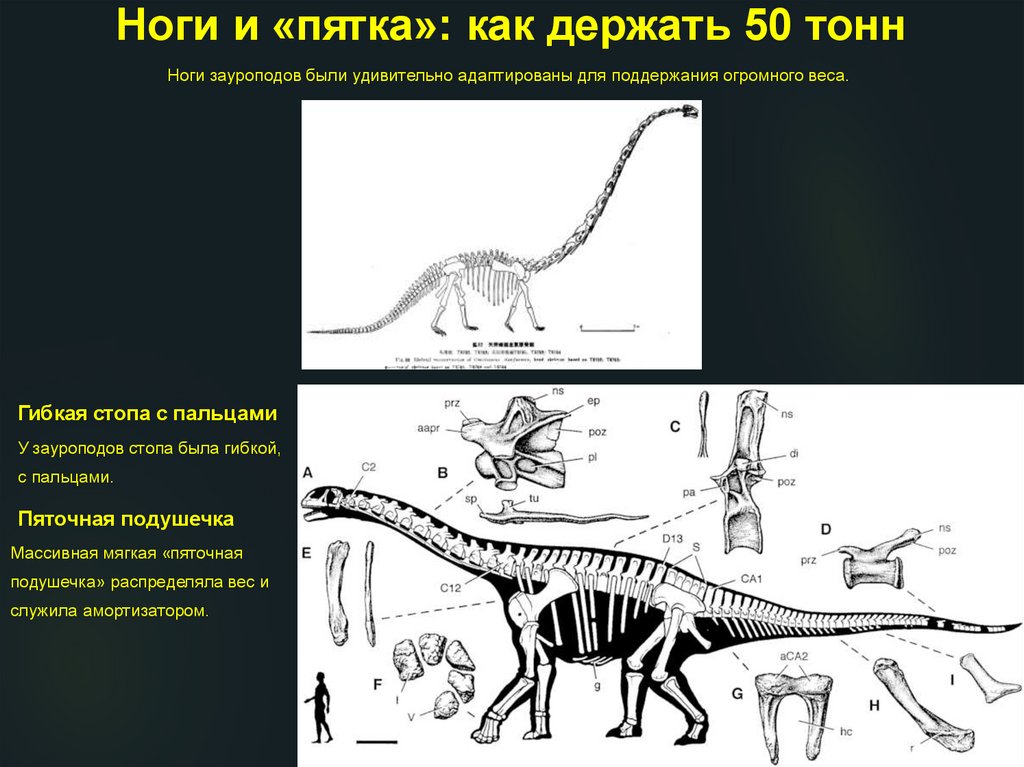 Ноги и «пятка»: как держать 50 тоннНоги зауроподов были удивительно адаптированы для поддержания огромного веса.