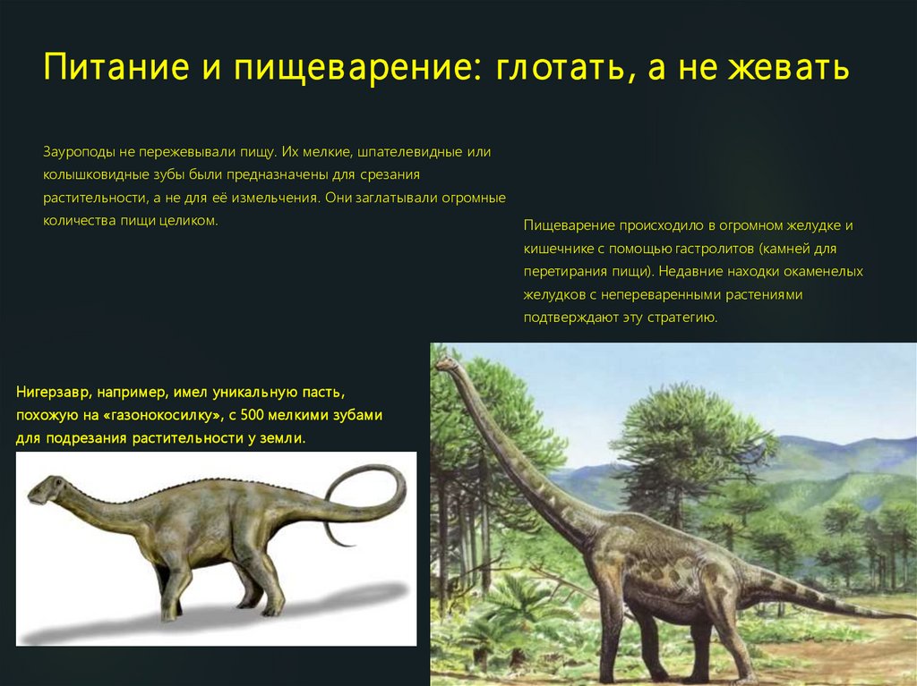 растительности, а не для её измельчения. Они заглатывали огромные