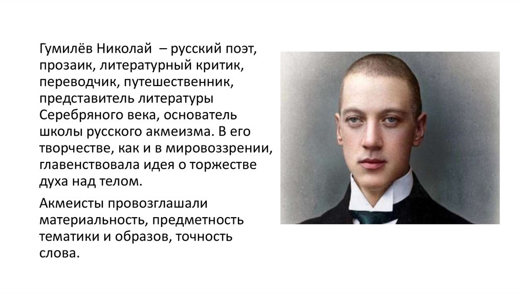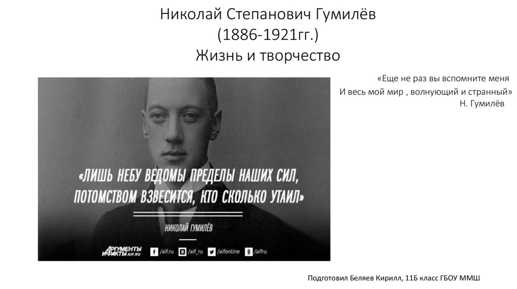 1. Николай Степанович Гумилёв (1886-1921гг.) Жизнь и творчество «Еще не раз вы вспомните меня И весь мой мир , волнующий и