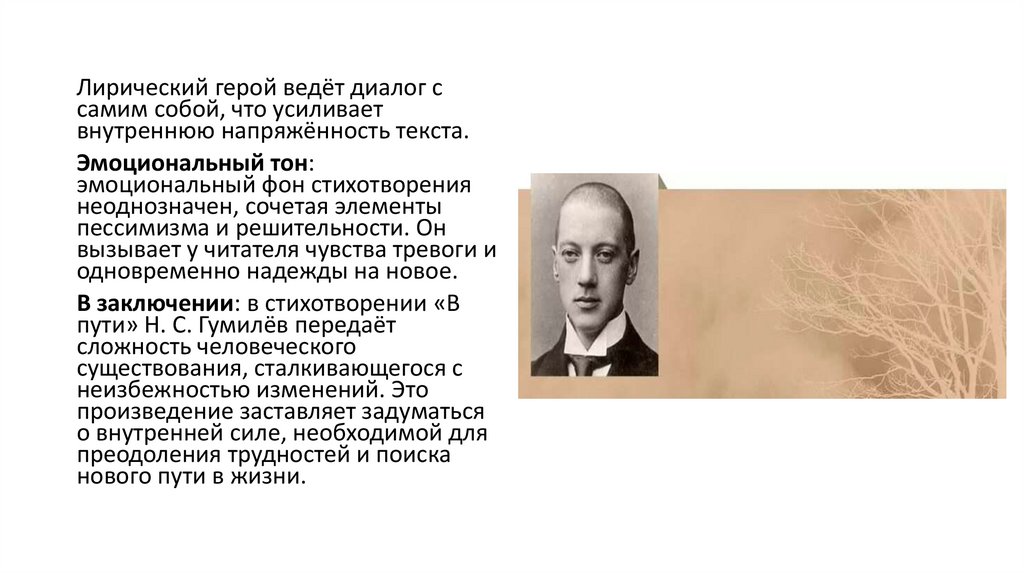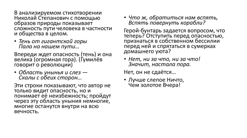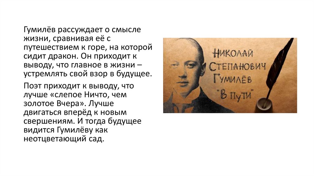 Гумилёв рассуждает о смыслежизни, сравнивая её с
