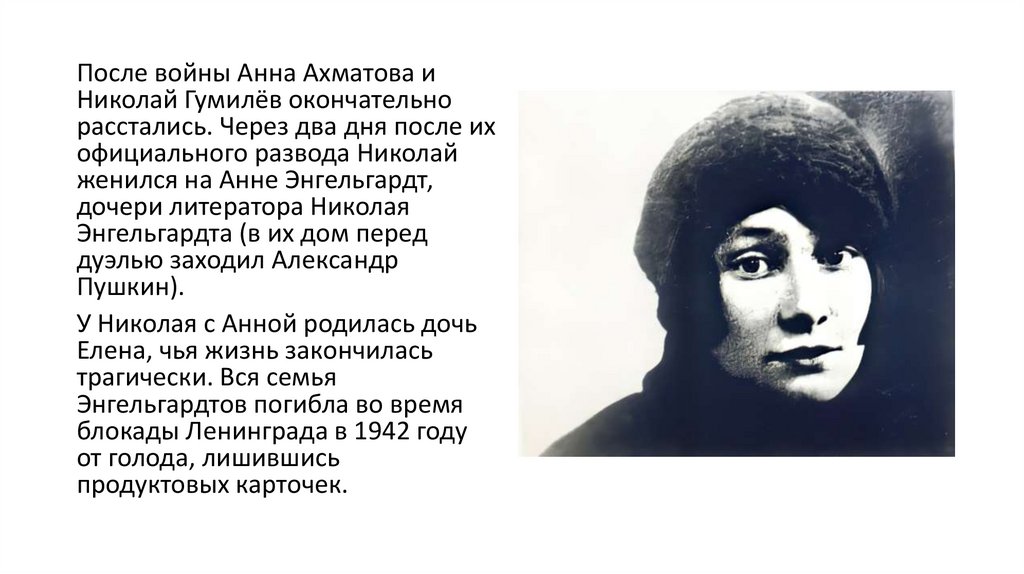 После войны Анна Ахматова иНиколай Гумилёв окончательно