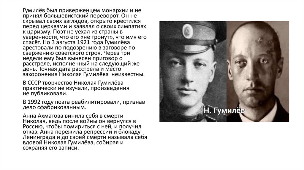 • Несмотря на свою короткую жизнь,Гумилёв оставил колоссальное наследие.