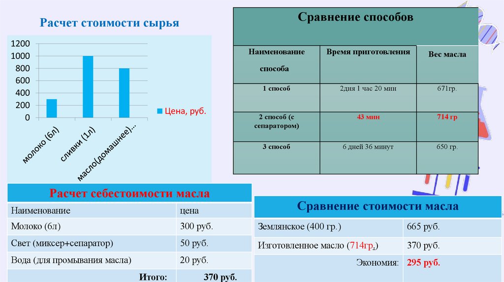 Цель: выбирать наиболее выгодный вариант изготовлениясливочного масла в домашних условиях