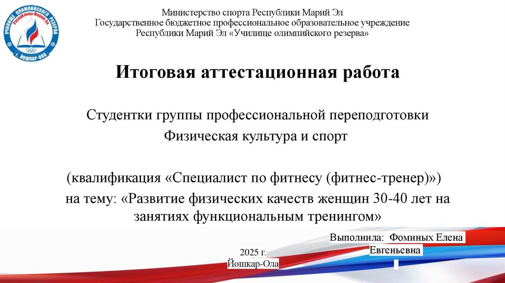 Министерство спорта Республики Марий ЭлГосударственное бюджетное профессиональное образовательное учреждение
