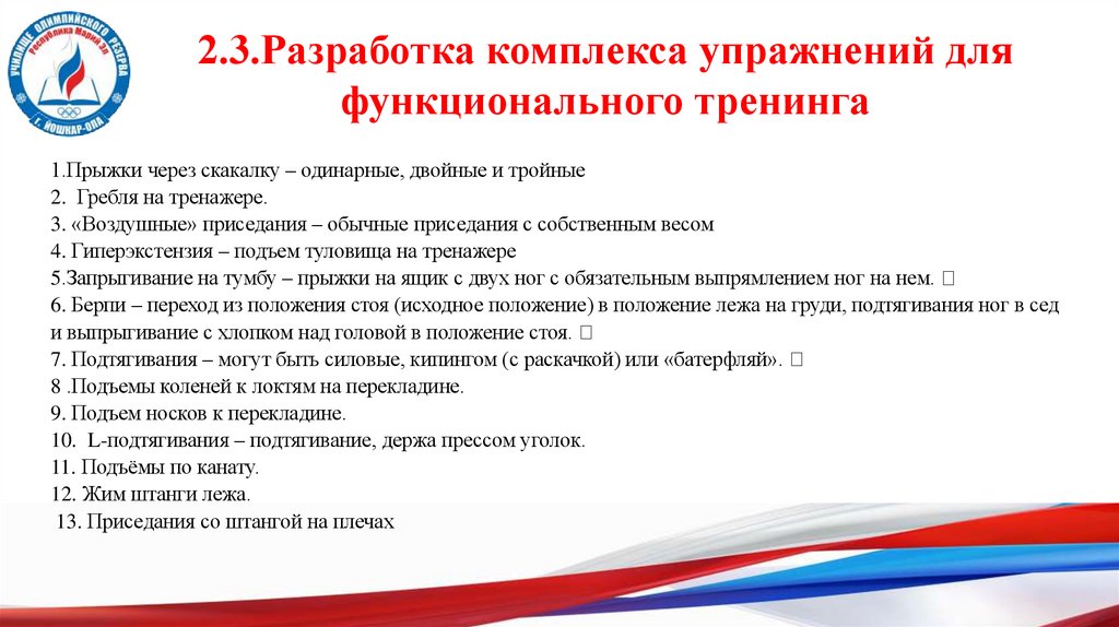 2.3.Разработка комплекса упражнений дляфункционального тренинга