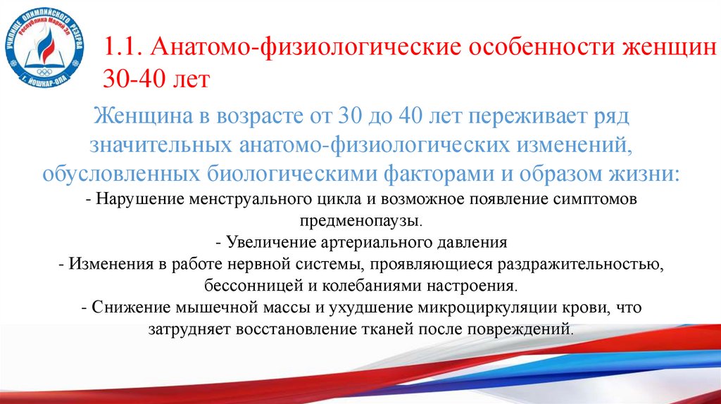 1.1. Анатомо-физиологические особенности женщин30-40 лет