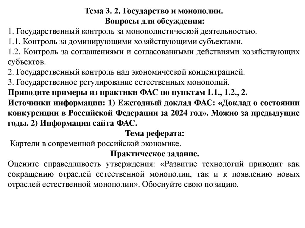 Тема 3. 2. Государство и монополии.Вопросы для обсуждения: