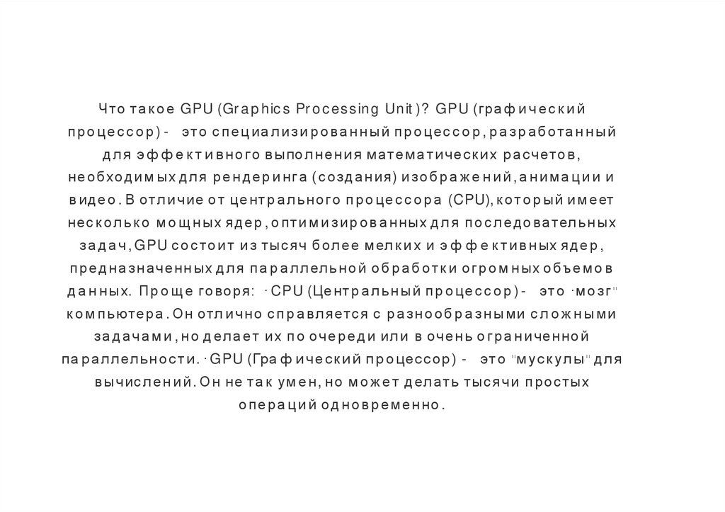 па р а л л ел ь н о с т и . · GPU (Гра ф и ч е с к и й п р о це с с о р ) - э т о м у с к у л ы д л я