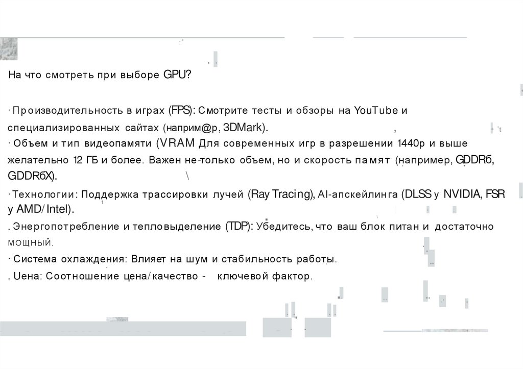 · Объем и тип видеопамяти (VRAM Для современ ных игр в разрешении 1440р и выше
