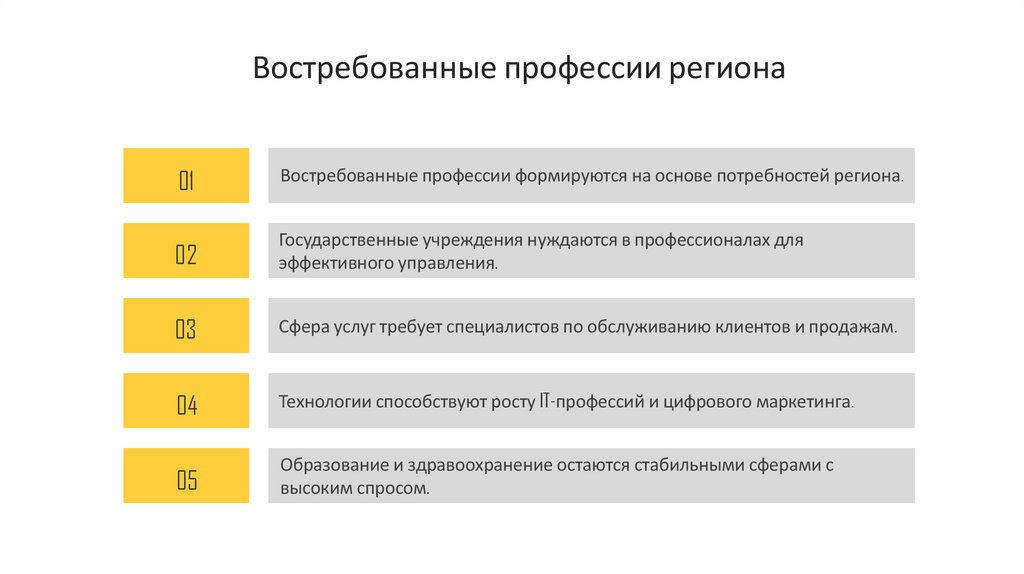 Тренды рынка трудаВостребованные профессии в регионе определяются потребностями местного рынка