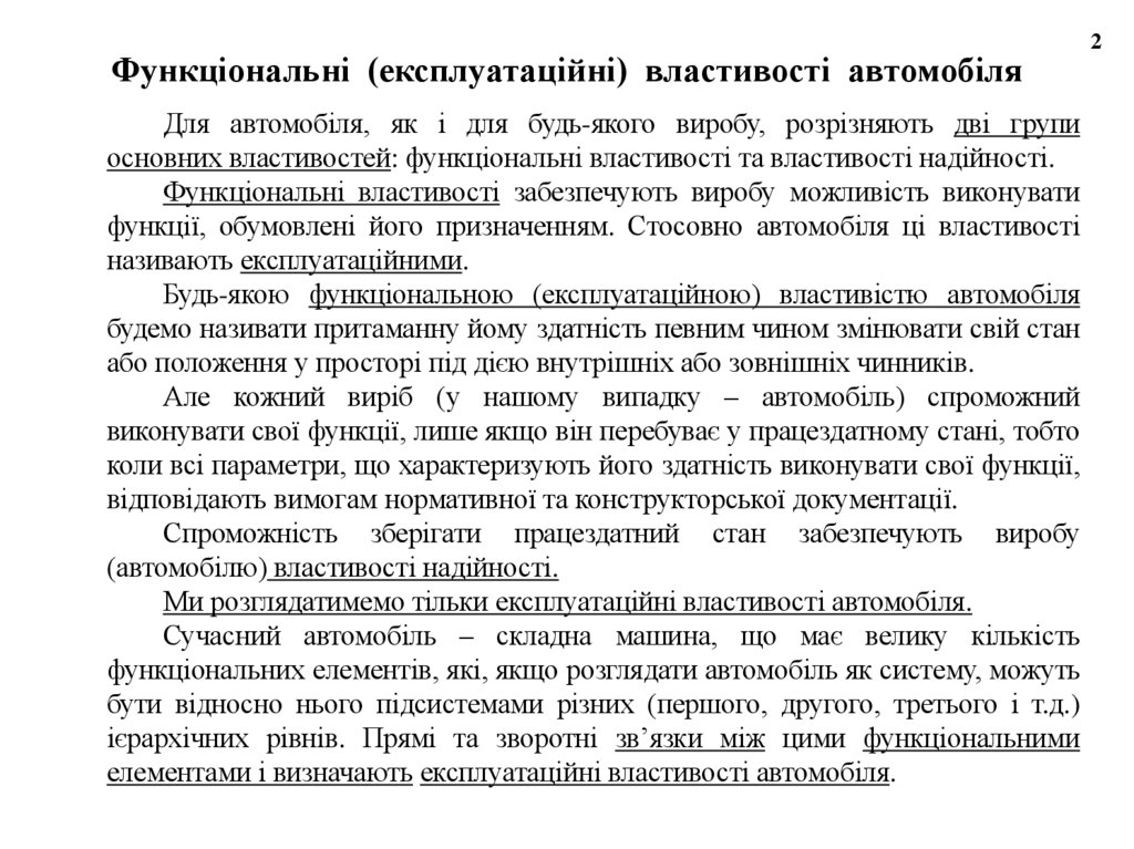 функції, обумовлені його призначенням. Стосовно автомобіля ці властивості