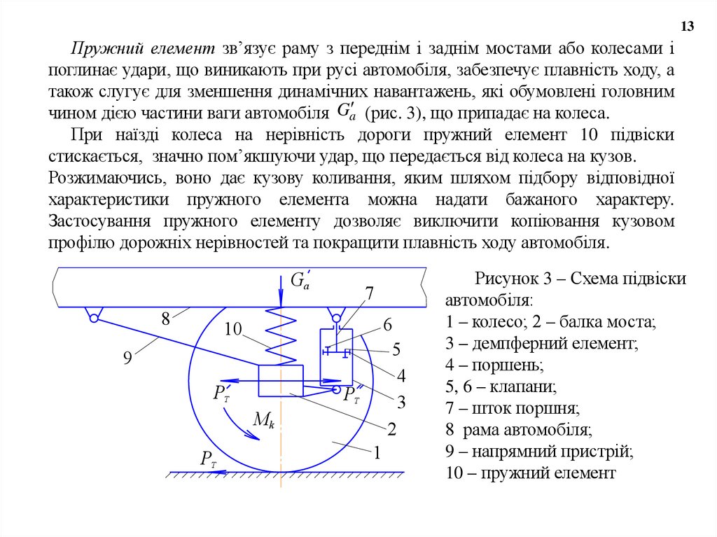 При наїзді колеса на нерівність дороги пружний елемент 10 підвіски