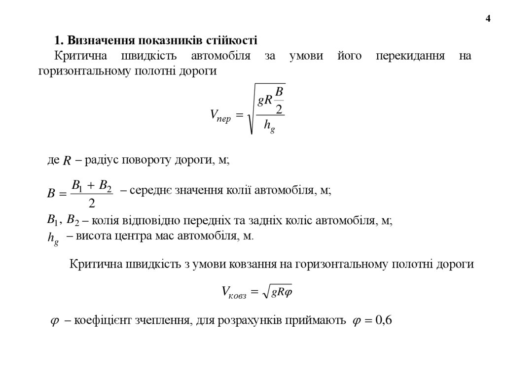 Критичні швидкості автомобіля за умов ковзання та перекидання