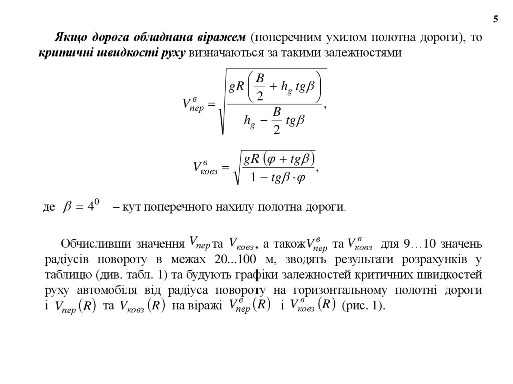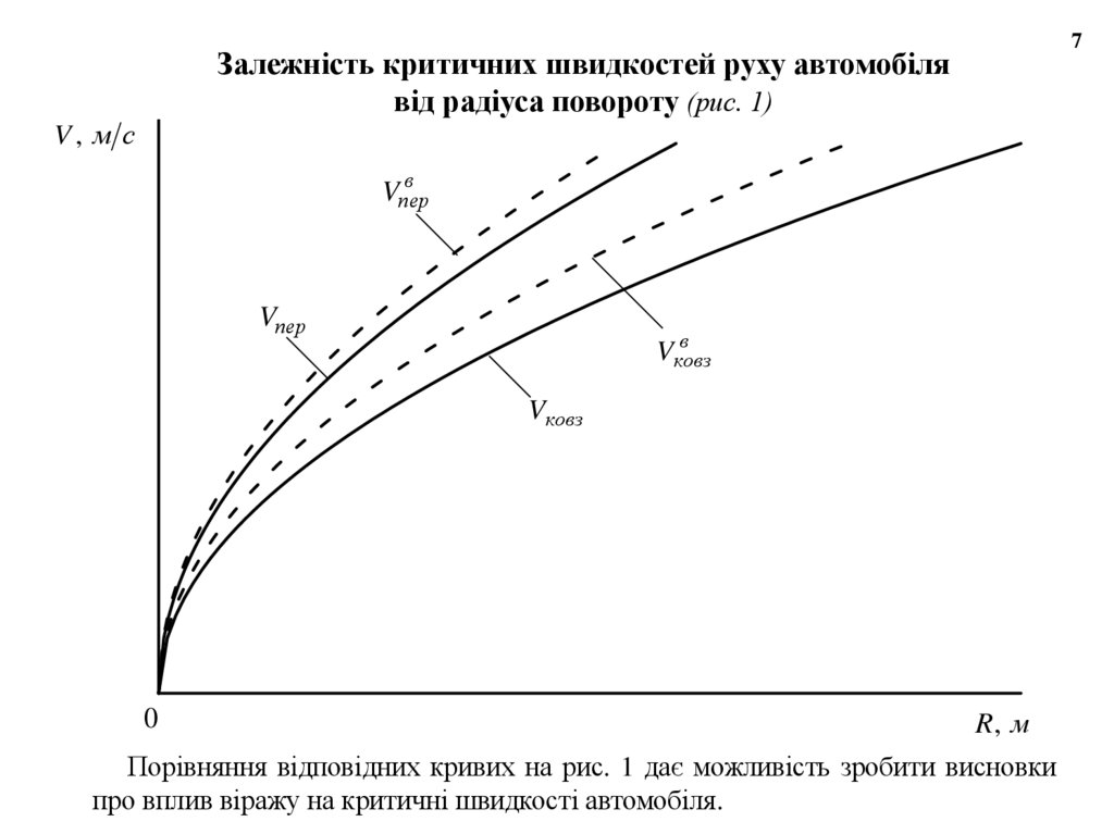 Залежність критичних швидкостей руху автомобілявід радіуса повороту (рис. 1)