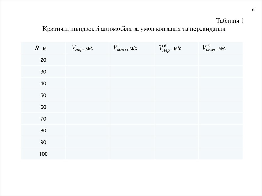 радіусів повороту в межах 20...100 м, зводять результати розрахунків у