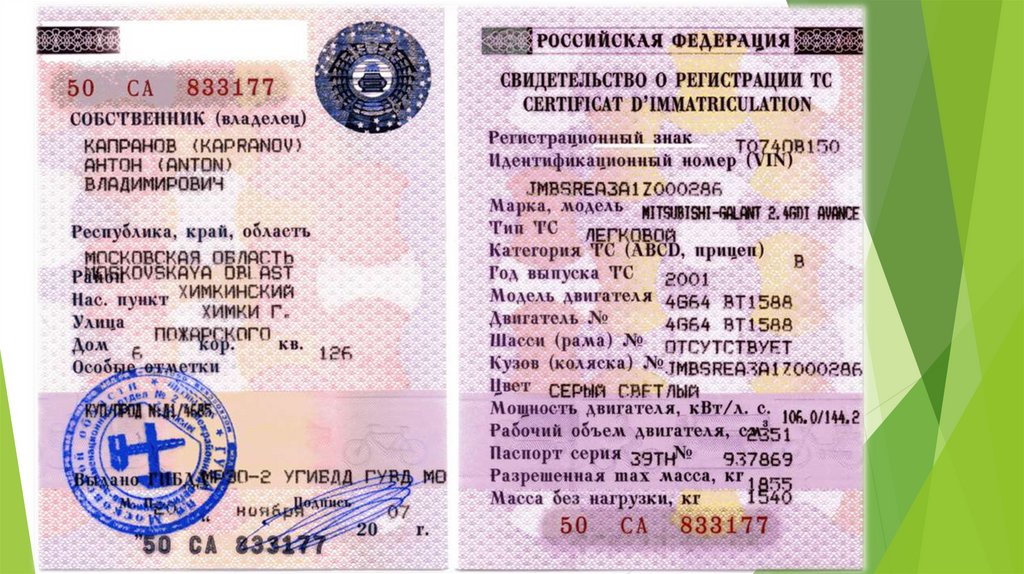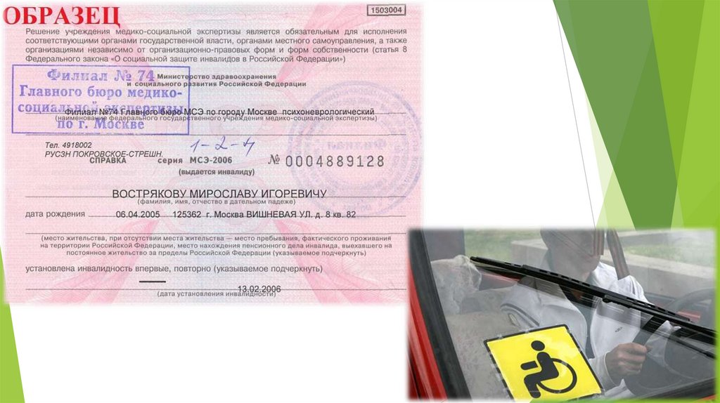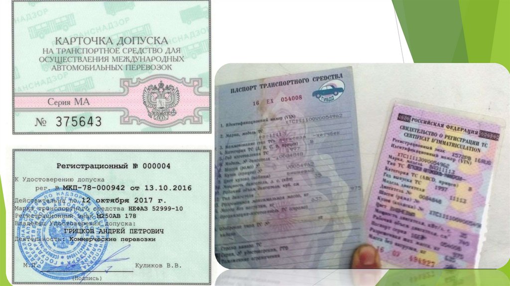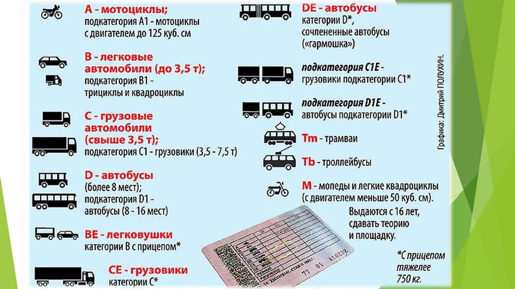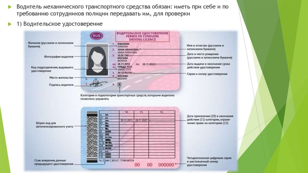 1) Водительское удостоверение