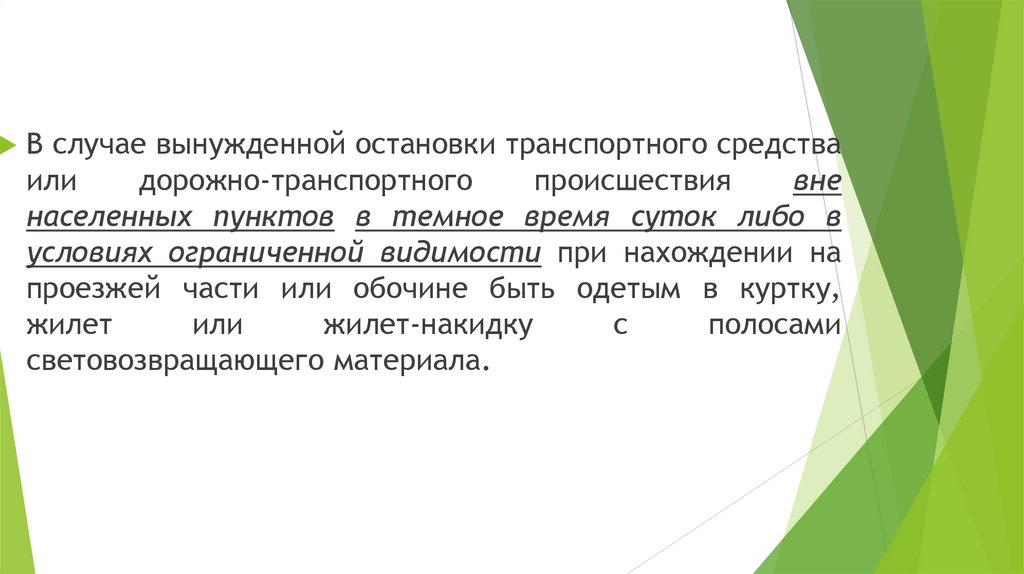 В случае вынужденной остановки транспортного средстваили