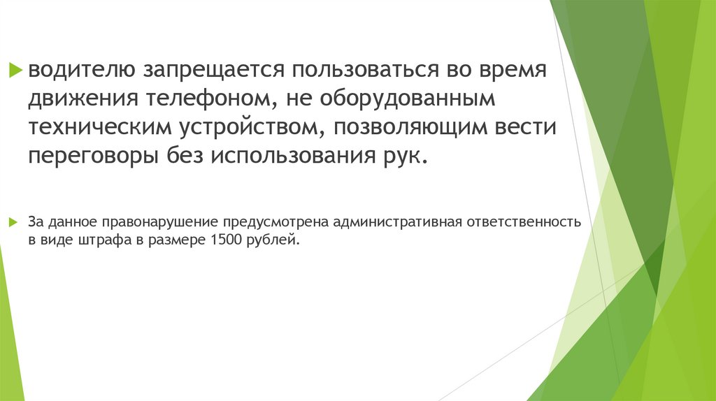 водителю запрещается пользоваться во времядвижения телефоном, не оборудованным