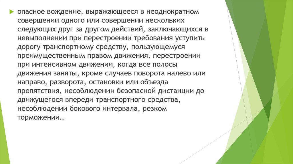 опасное вождение, выражающееся в неоднократномсовершении одного или совершении нескольких