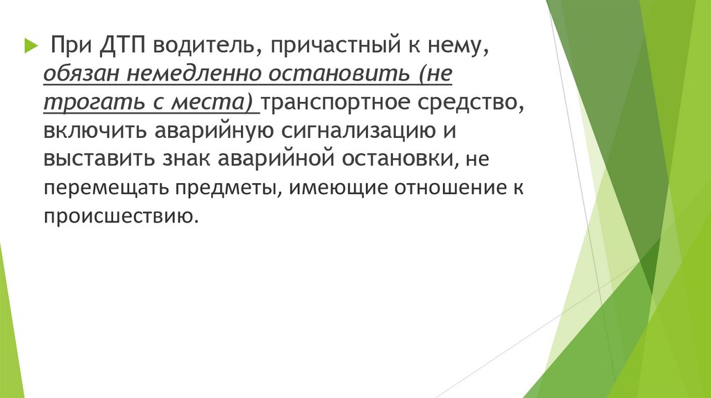 При ДТП водитель, причастный к нему,обязан немедленно остановить (не